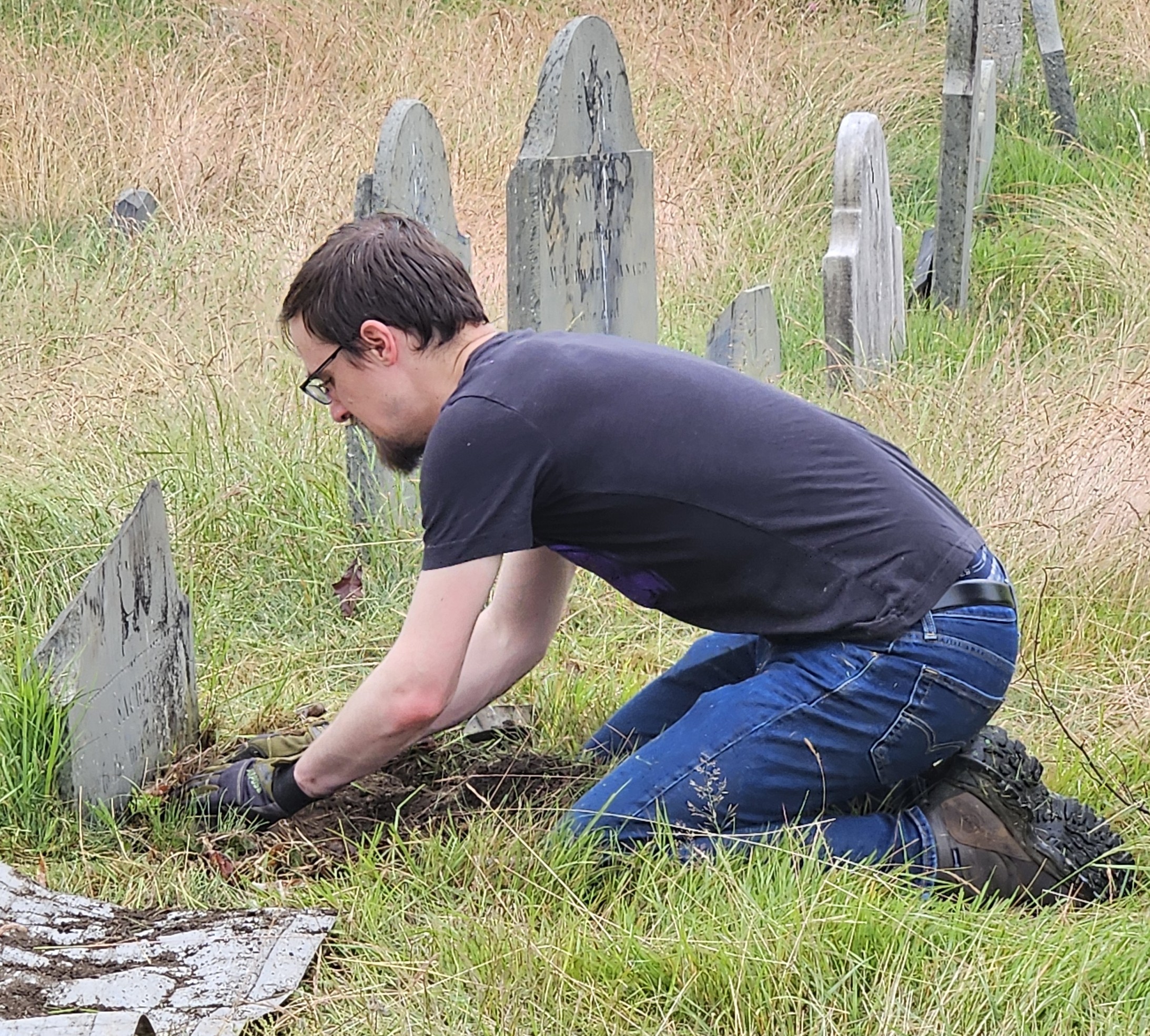 Adrian is a programmer at Activision, working in downtown Portland. He and his wife Sara (also on the board) live in rural Saco. It was Sara that first introduced Adrian to the joys of the cemetery; he thoroughly enjoys discovering people's names, their stories, and the beautiful artwork that went into their memorialization. He and Sara first discovered Eastern Cemetery in the summer of 2023, when they participated in the summer conservation projects. It was a privilege to see a stone go from just a small patch of slate peeking out of the grass to a fully cleaned, restored, and erected headstone. As a part of the board, Adrian co-heads the conservation and record-keeping program. He says, "Come out to Eastern, and learn how to clean a stone!"