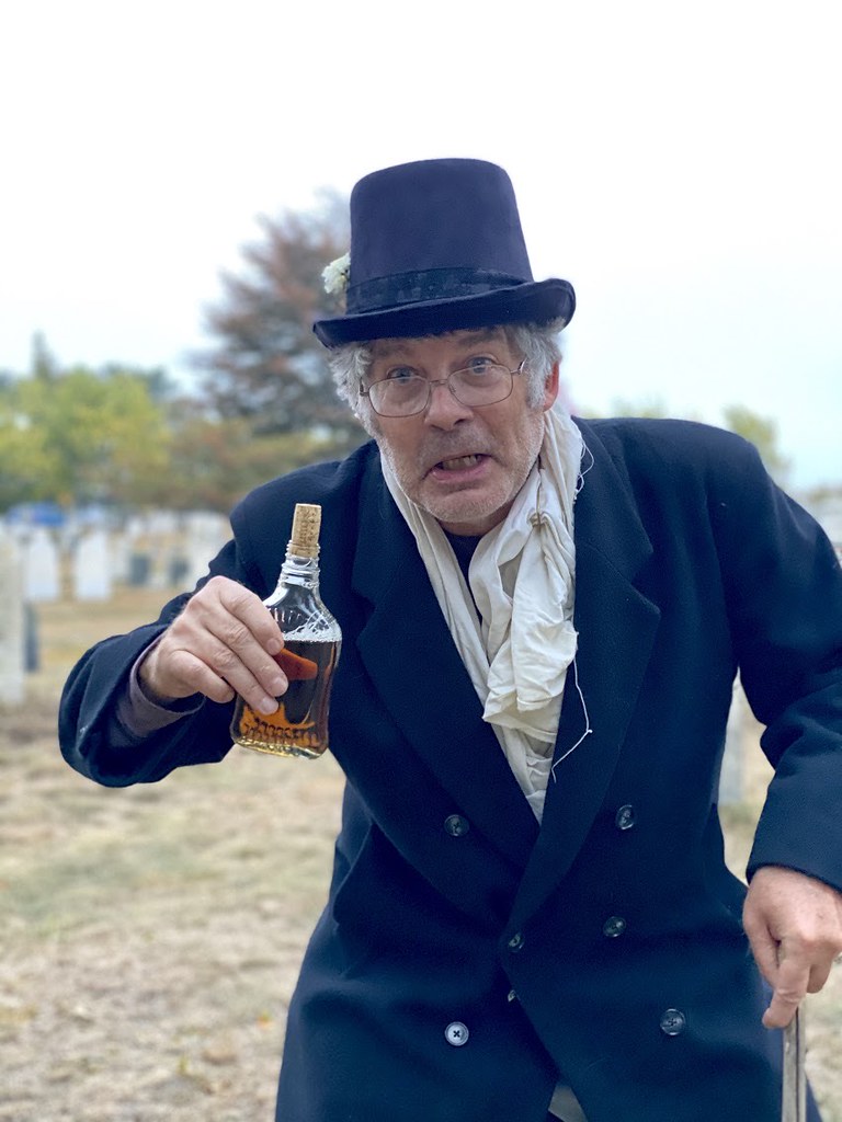 Pete has been a member of the board for a few years and has been participating in cemetery events for even longer. He is a faithful tour guide at the Eastern Cemetery, and also volunteers at Evergreen Cemetery. He put in 25 years at Deering High School as a special education instructor and worked in the after-school drama program. He has a vast background in theater, film, and Los Angeles television, which makes him stand out as his alter ego, Billy Hans (an Eastern Cemetery spirit who haunts Walk Among the Shadows each year). Pete also serves on and chairs the Research & Education Committee.